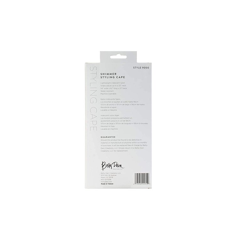 - LIGHTWEIGHT IRIDESCENT NYLON SHIMMER: Add this subtle style to your salon station with the Betty Dain Shimmer Styling Cape with Snap Closure. The lightweight, iridescent nylon fabric is water resistant so it's easy to keep clean while bringing new vibrance and style where you desire.
