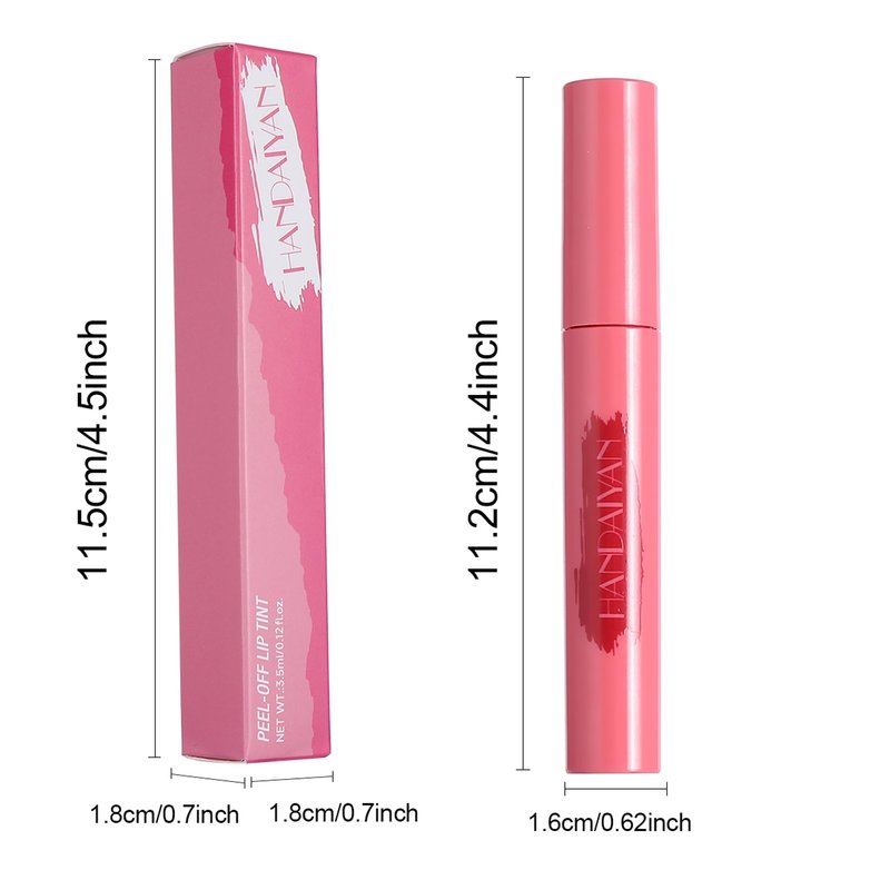 - A soft brush that covers the area you want to apply, very easy to tear, just wait for the liquid lip glaze to dry, and gently rub along the edges of the outer film, and you can remove the outer film perfectly, without entanglement, not only can be used as lipstick, can also be used as a lip liner, just need to smear on the lip edge, after stripping can form a perfect lip line.