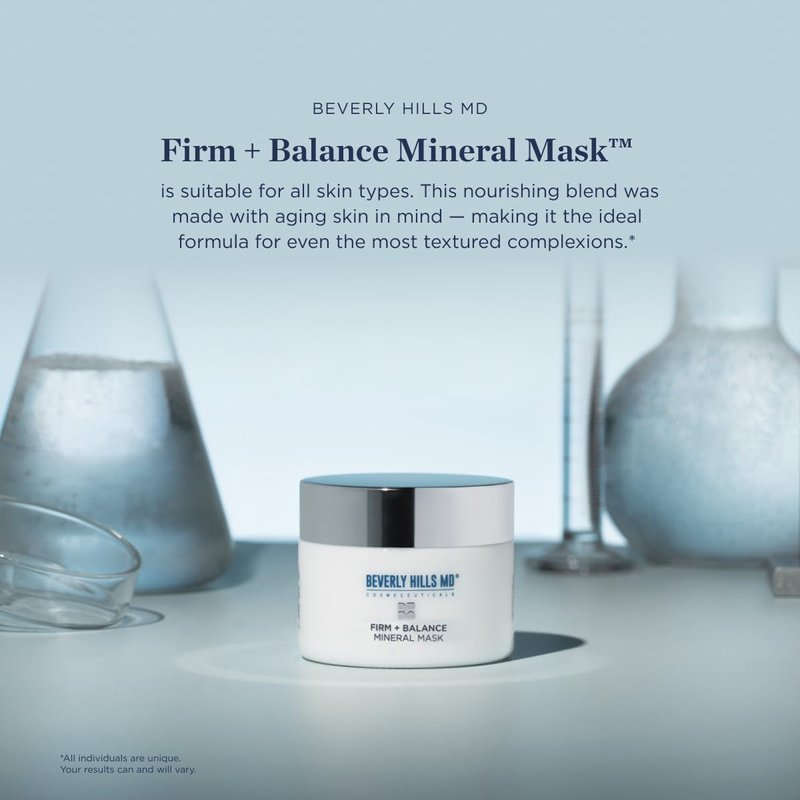 Beverly Hills MD Firm + Balance Mineral Mask is a mineral-rich clay mask designed to help firm, tighten, and revitalize skin’s appearance with just 2-3 uses a week. Its nutrient-rich formula makes an incredible addition to any skincare routine — to help you achieve your brightest, most youthful-looking skin possible.*