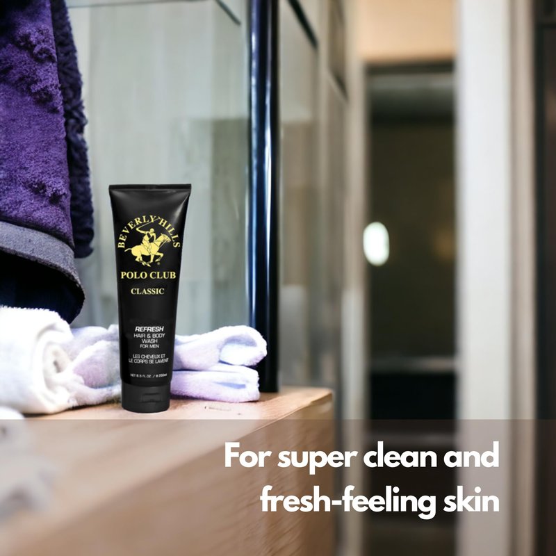 Beverly Hills Polo Club Refreshing and Cleansing Hair and Body Wash for Men with Luxury Designer Scents BHPC 8.5 oz (Classic)