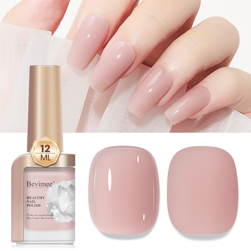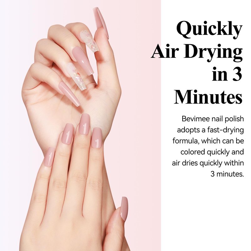 Bevimee Quick Dry Nail Polish Air Fast Drying, Sheer Nude Regular Color Nail Polish Holographic High Coverage Nail Lacquer Water Based Natural Nail Art No Required UV LED, 12ML