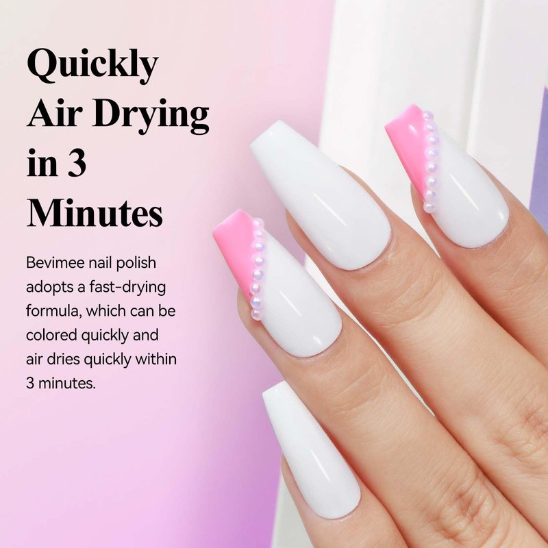 - 【Quick Dry Nail Art】Bevimee white nail polish provides rich color that air dries in 2-3 mins and lasts up to 7 days. That means fast drying without fast chipping, so you can get on with your life without worry of a smeared, ruined manicure
