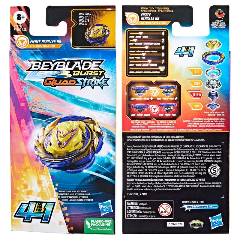 Beyblade Burst Quadstrike Fierce Achilles A8 4-in-1 Battle Top
