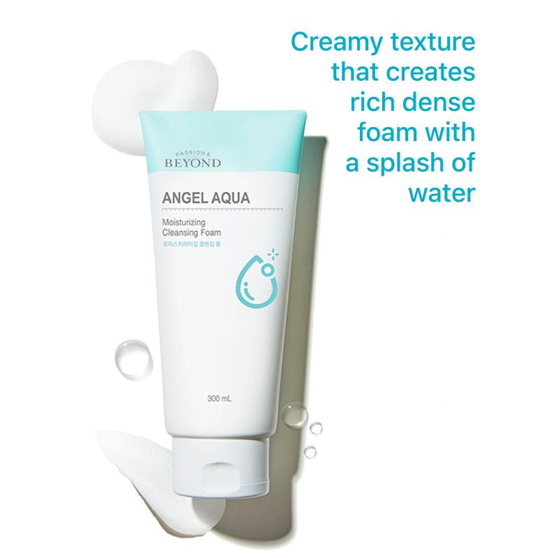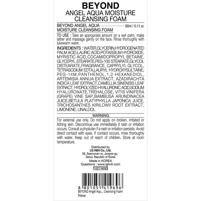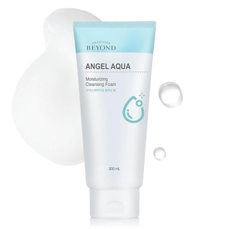 - BEYOND ANGEL AQUA MOISTURE CLEANSING FOAM (300ml/10.1fl oz) - Palm-derived and coconut-based formula creates a rich lather to cleanse your skin thoroughly while maintaining moisture, leaving it feeling refreshed without over-drying.