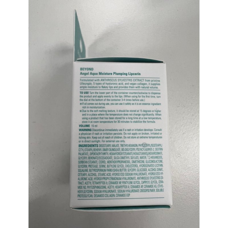- BEYOND ANGEL AQUA PLUMPING LIPCERIN (15ml/0.5fl oz) - Unveil plump, hydrated lips in an instant! Our Plumping Lipcerin, a fusion of "lip" and "glycerin," not only smooths away dryness but also fortifies your lips with a 91% stronger barrier right after application, addressing signs of aging.