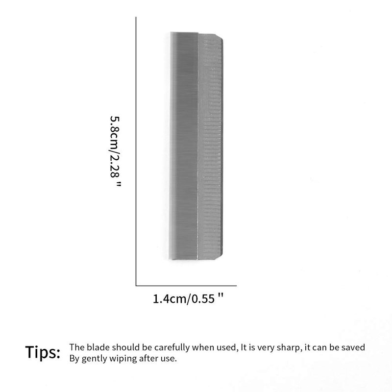 - Material: Stainless Steel;Size: 2.3" x 0.59" (L*W);Includes: 50 blades are enough for you to replace over quite a long period.