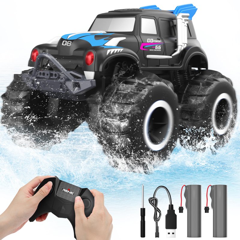 - Amphibious Remote Control Car - The amphibious monster truck adopts advanced waterproof technology, allowing you to easily travel through indoor or outdoor environments, including beaches, pools, sand, land, stone roads. It can not only drive on the water surface, but also drive upside down underwater.
