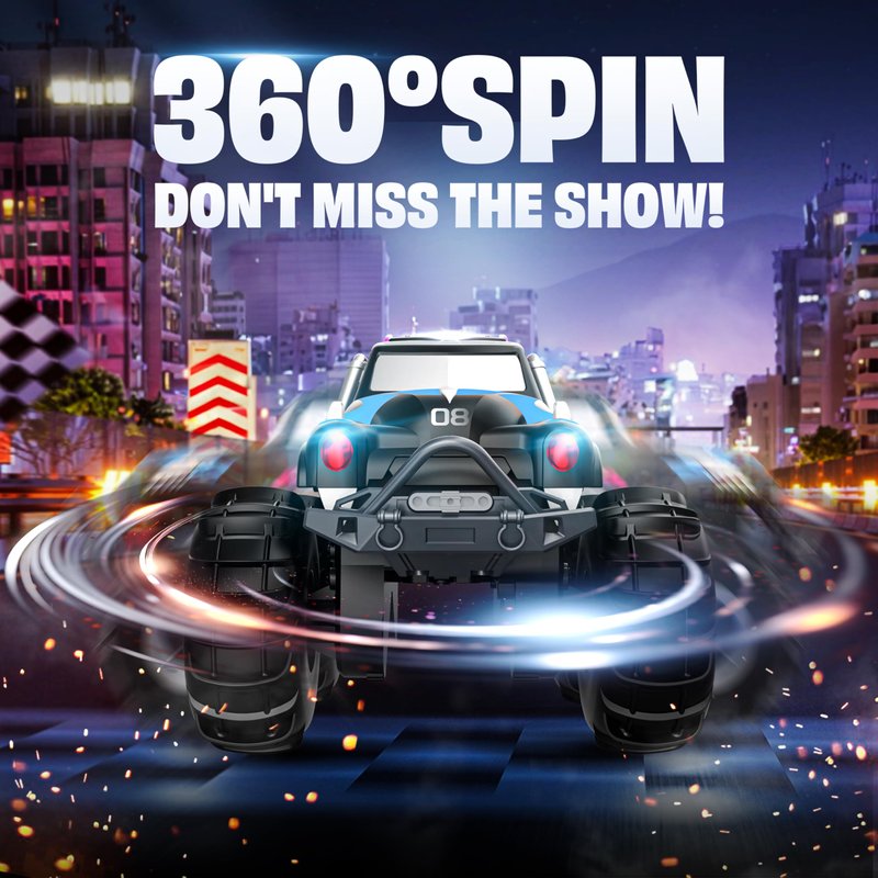- Powerful Dual Motor & 360° Spin - Equipped with high-quality soft and elastic rubber tires, it can handle even the slipperiest roads with ease thanks to its shock absorption, strong grip, and anti-skid features. And with the ability to perform cool tricks like a 360 spin.