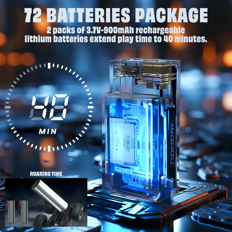 - Large Capacity Battery - Enjoy up to 50+ minutes of driving fun with the 900mAh high-capacity rechargeable batteries. The latest upgraded 2.4GHz radio control system provides a stable signal to prevent interference when multiple vehicles are playing at the same time.