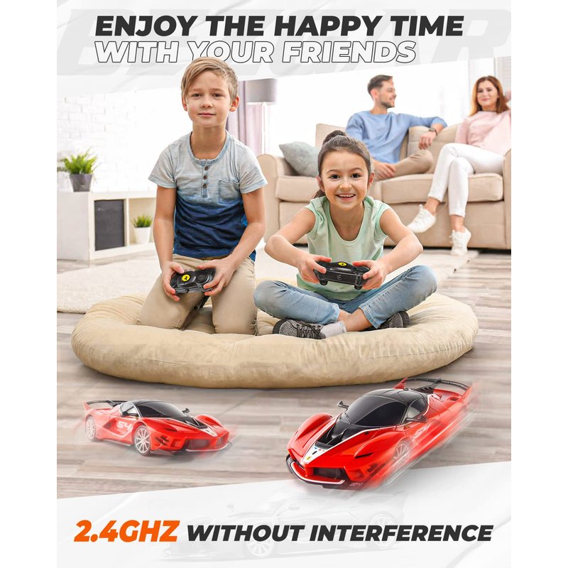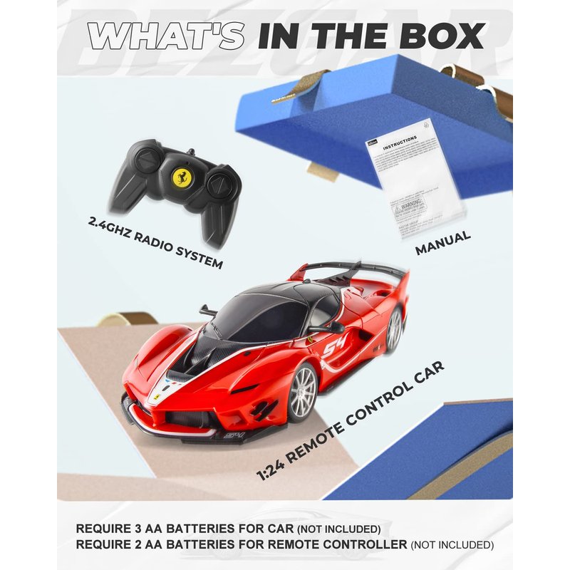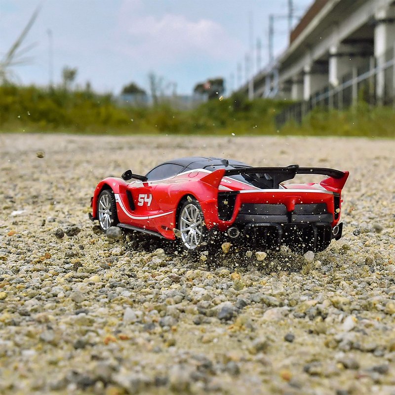 - 【IDEAL REMOTE CONTROL FERRARI FOR BOYS/ADULTS】Round edges to protect children from getting injury. The model Ferrari Fxx-k works well on smooth surface, suitable to play inside and outside. You not only play with it using the remote control, but also place it as an exhibit on display shelf. Perfect for Christmas gifts, stocking stuffers or rewards and so on.