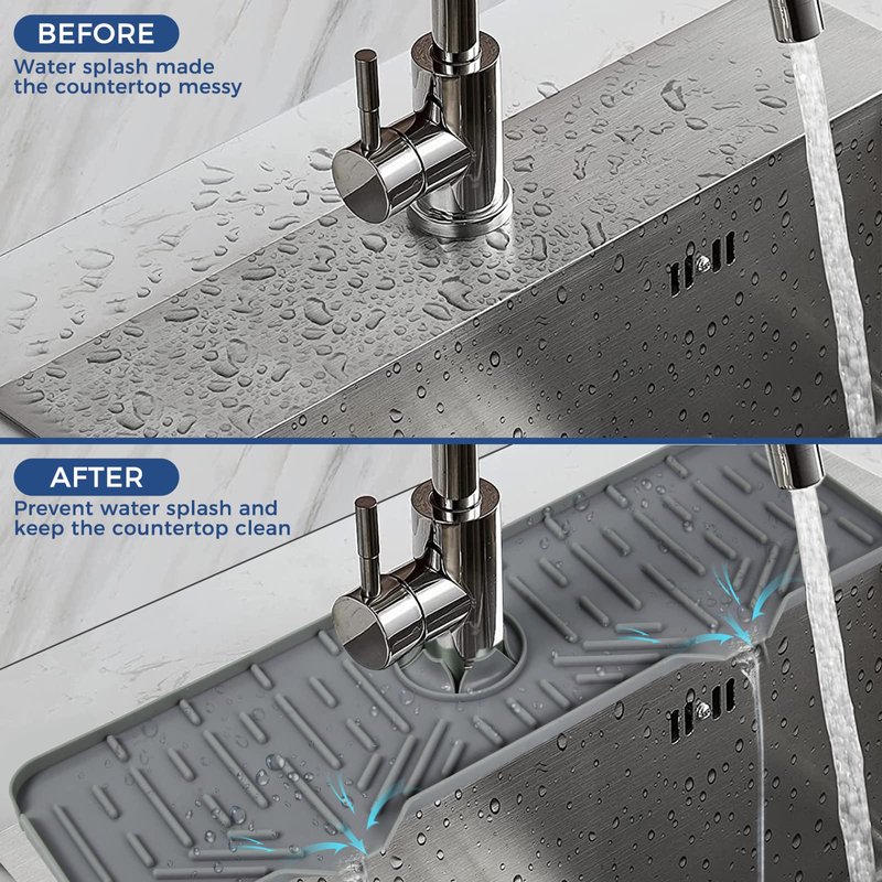 Our Silicone Faucet Sink Mat helps to prevent water stains on kitchen countertops from the faucet splashing or leaking.
