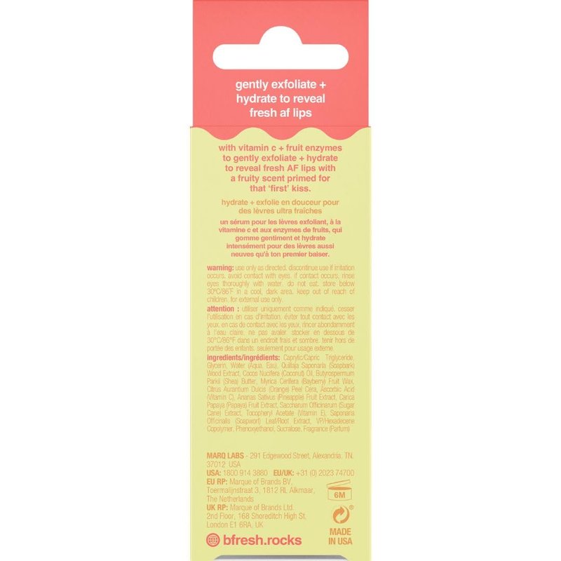 an exfoliating lip serum with vitamin c and fruit enzymes to gently exfoliate + encourage healthy cell turnover to reveal fresh AF lips primed for that ‘first’ kiss.