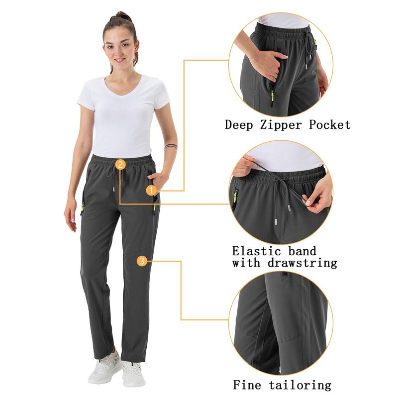 BGOWATU Women's Hiking Cargo Pants Quick Dry Lightweight Water Resistant Joggers Pants Zipper Pockets (Dark Grey,US XL)