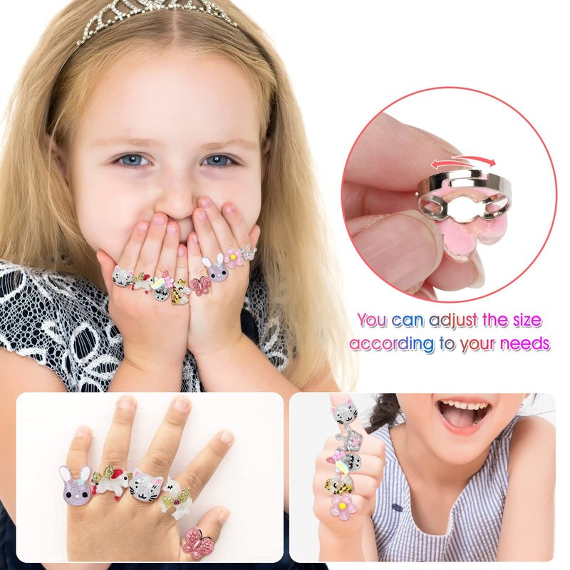 - Adjustable Size ------ Jewelry finger rings are 16mm in diameter and rings for girls can be adjusted to the size of the finger and can be used by both children and adults. Suitable for parties, role-playing, everyday wear, Christmas and more.