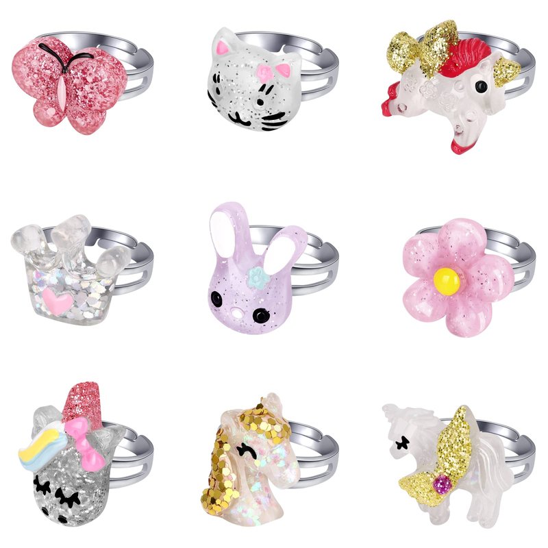 - Different adorable designs---It contains 18pcs different pattern finger rings, such as unicorn ring, rainbow ring,butterfly ring, cat ring, ice cream ring etc.