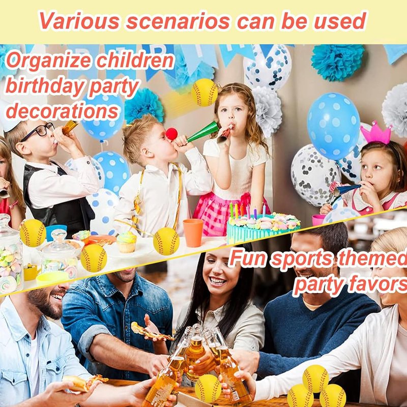 Bgtecho 24Pack Mini Softball 1.6 Inch Mini Sports Stress Balls With their compact dimensions, these mini softball easily slip into pockets, bags, or travel kits, and immediate use at parties, gatherings, or other events. They will bring more fun and joy to you and your kids. These mini softball balls are easy to grip and can be squeezed to help relieve stress and improve focus. These foam softball are good for indoor and outdoor fun, making them ideal as party decorations, beach toys, and more. They can also be a filler for gift bags,carnival prizes,and fun gifts for kids and friends. Spec: Material: premium PU foam Size: 1.6 Inch Package Includes: 24Pack Mini Softball Helpful Tips: Please ensure the size is suitable before making your purchase.