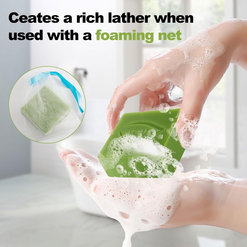 - Rich Foam: Yoni care soap with foaming net, foaming net is made of polyethylene, which is soft and durable. With the help of the foaming net, rich foam can be produced. After use, place the soap in the foam net and hang it on the wall to promote quick drying and maintain cleanliness.