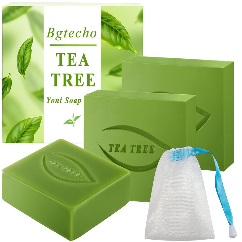 Bgtecho 3PCS Yoni Soap Bars,Yoni Bar Soap for Women,100% Natural Organic Yoni Soap Bars,Tea Tree Yoni Wash Eliminates Odor Ph Balance 3.53 OZ/100g,with Foaming Net(Tea Tree)