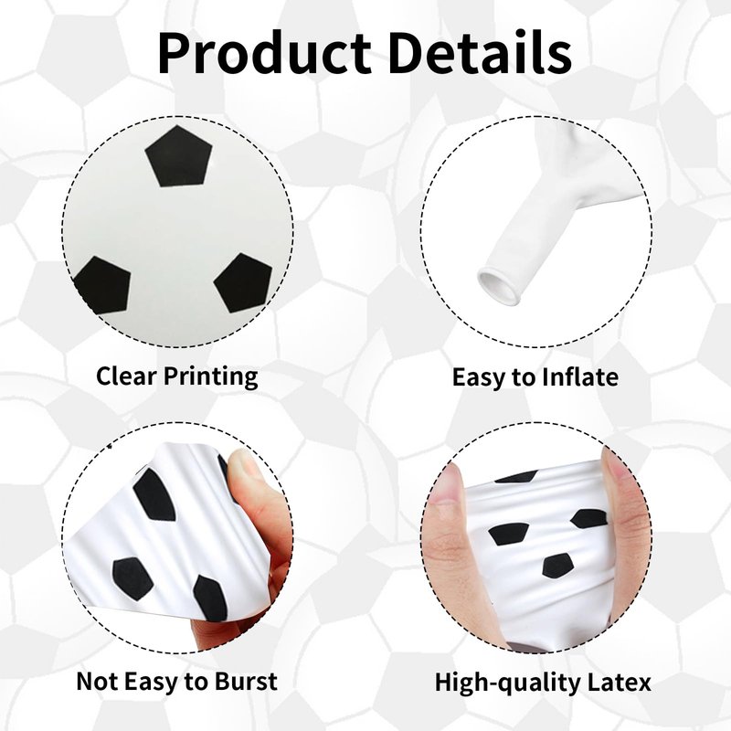 - HIGH-QUALITY BALLOONS: Our football party decorations are made of high-quality, safe, non-toxic latex. They are durable and reliable, so you don't need to worry about them tearing or bursting after inflation. These balloons can be filled with air or helium, providing flexibility for your party needs. Our soccer party balloons are vacuum-packed to ensure they arrive in perfect condition and are safe for children to use and play with.