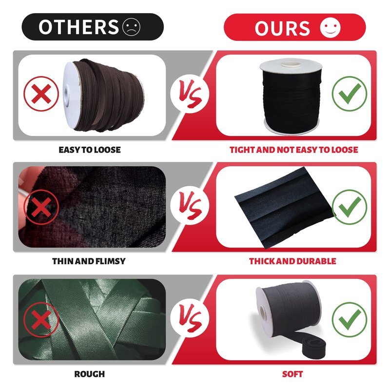 - Bias Tape or bies de tela with Premium Quality -Made from high quality polyester with bias cut, and both the folded edges are equal width and are folded in the center; It is NOT Stretchy, so it is not 1 inch elastic for sewing. Wide enough; thick enough; Not stiff; Soft after washing; Non-shrink; Sturdy and durable; No ironing needed; Colorfast; Machine and hand washable; Odorless.