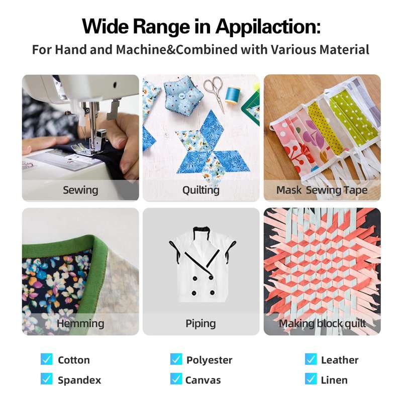 - Easy to Use with Various Fabric- Since our double fold bias tape is thicker than single fold bias tape and wider than double fold bias tape 1/4 inch and bias tape double fold 1/2 inch, it’s easy to be sewn with your larger cloth made of cotton, polyester, leather, canvas, and linen.