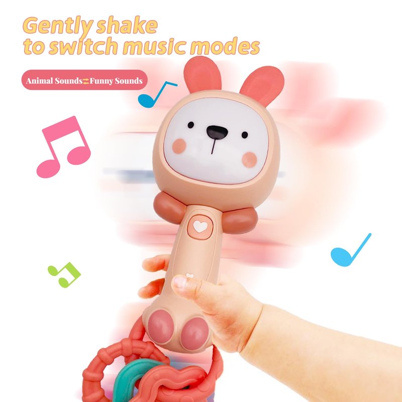 BIBEBRE Musical Rabbit Light-Up Toy and Teething Ring for Toddlers Sensory Chew and Fine Motor Skills Toy Baby Rattle and Teething Toys for 6 12 18 Month Babies (Rabbit)