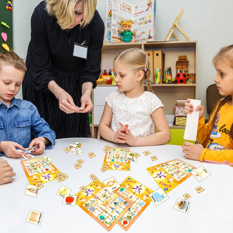 - šćHIGH QUALITY MATERIALćThe bible bingo set of vacation bible school is made by toxic free and high quality cardboard materials. It is safe for you and your kids to play this group game and also is a good idea to play it on festival or holiday celebration.