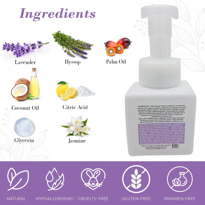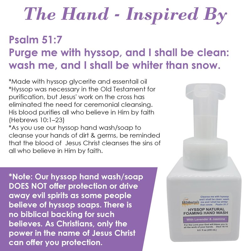 - ✔ Inspired by Scripture: Our foaming hand wash is inspired by Psalm 51:7, "Purge me with hyssop, and I shall be clean: wash me, and I shall be whiter than snow." This biblical verse serves as a reminder of the cleansing power of hyssop.