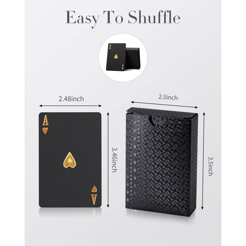 - [Product Dimensions] - Length x Width (3.46” × 2.48”) 1 Deck: 54 cards standard deck.Feel more comfortable to hold these black playing cards. We offer you the best and the most special poker playing cards available in the market. Perfect for family party, BBQ game, great for taking them as a gift to your friends or family