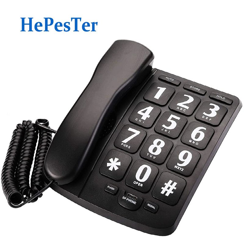 Big Button Phone for Elderly, HePesTer P-02 Amplified Corded Phone for Hearing Impaired Aid with Extra Loud Ringer Landline Telephone for Seniors Home House Phone Wall Mountable
