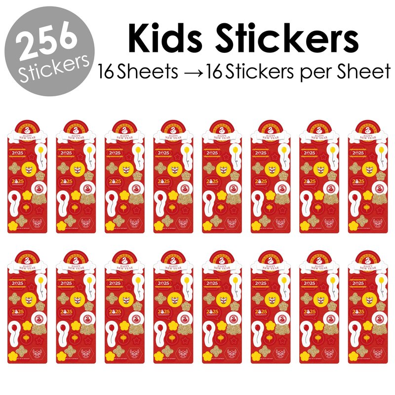 - Chinese New Year Favor Kids Stickers Includes 16 matching sticker sheets with 16 stickers per sheet for total of 256 stickers.