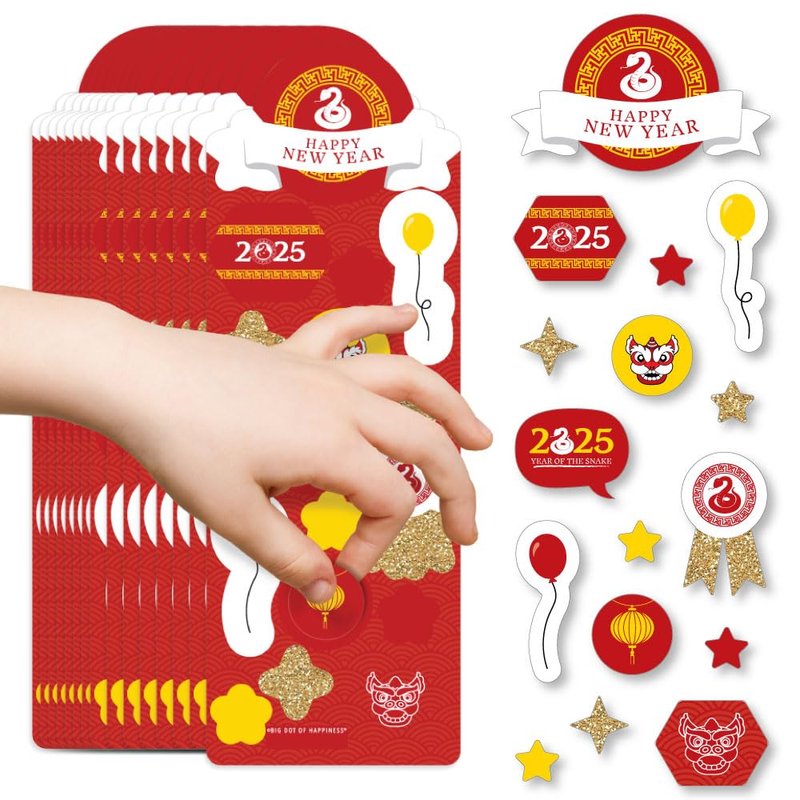 Big Dot of Happiness Chinese New Year - 2025 Year of The Snake Favor Kids Stickers - 16 Sheets - 256 Stickers