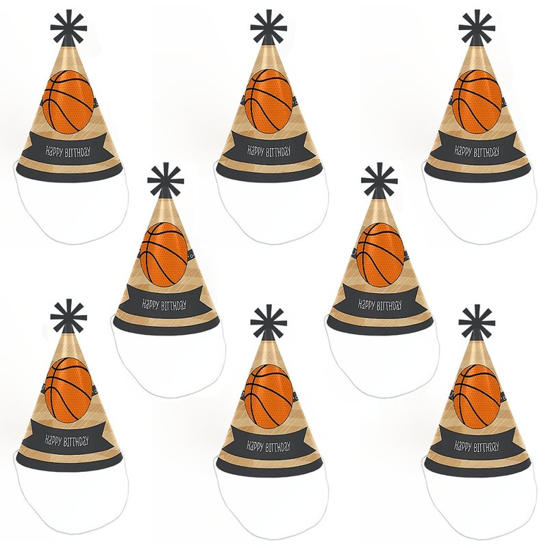 Big Dot of Happiness Nothin' but Net - Basketball - Cone Happy Birthday Party Hats for Kids and Adults - Set of 8 (Standard Size)