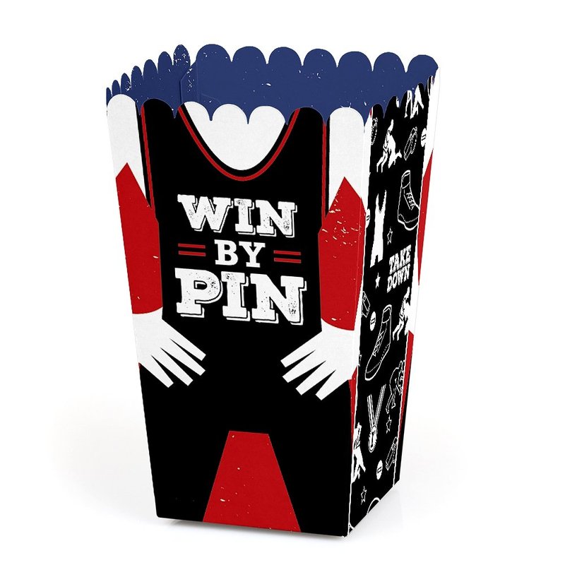Big Dot of Happiness Own the Mat - Wrestling - Birthday Party or Wrestler Party Favor Popcorn Treat Boxes - Set of 12