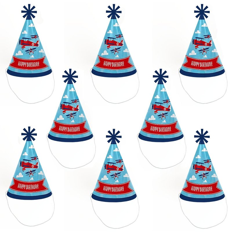 Big Dot of Happiness Taking Flight - Airplane - Cone Happy Birthday Party Hats for Kids and Adults - Set of 8 (Standard Size)