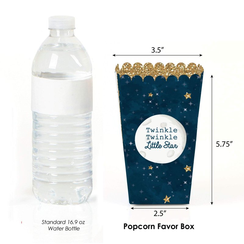 - PREMIUM PARTY FAVOR BOXES: Twinkle Twinkle Little Star party treat boxes are professionally printed on heavy-duty cardstock paper with a photo-like shine. They are hand-folded and individually inspected, then carefully packaged. Popcorn boxes will arrive flat. Easy assembly is required.