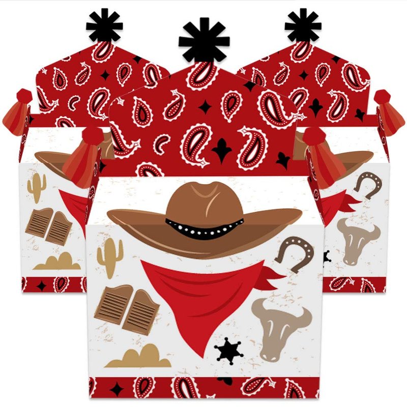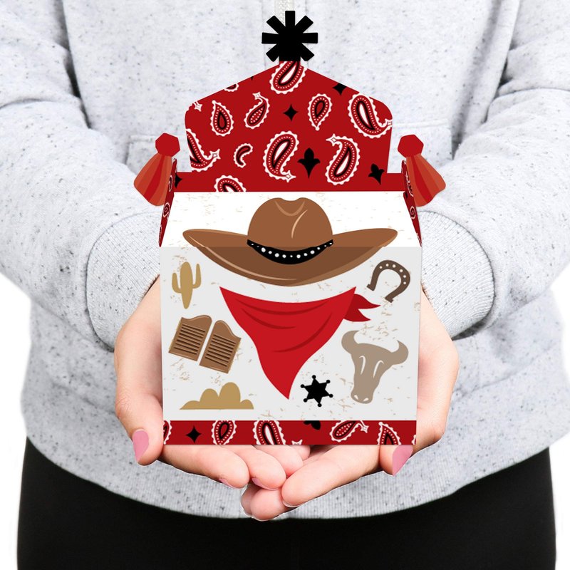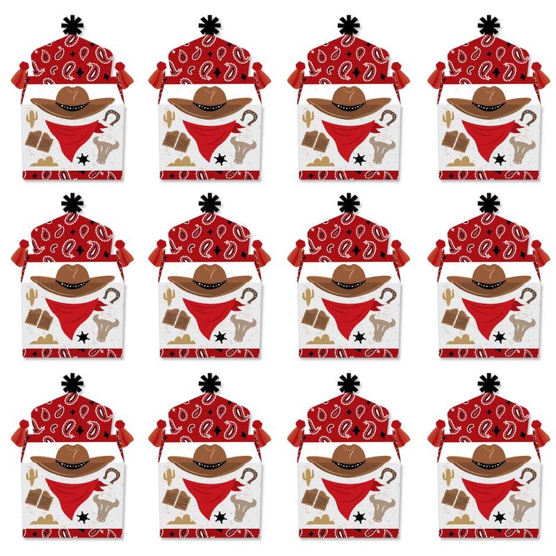 Big Dot of Happiness Western Hoedown - Treat Box Party Favors - Wild West Cowboy Party Goodie Gable Boxes - Set of 12
