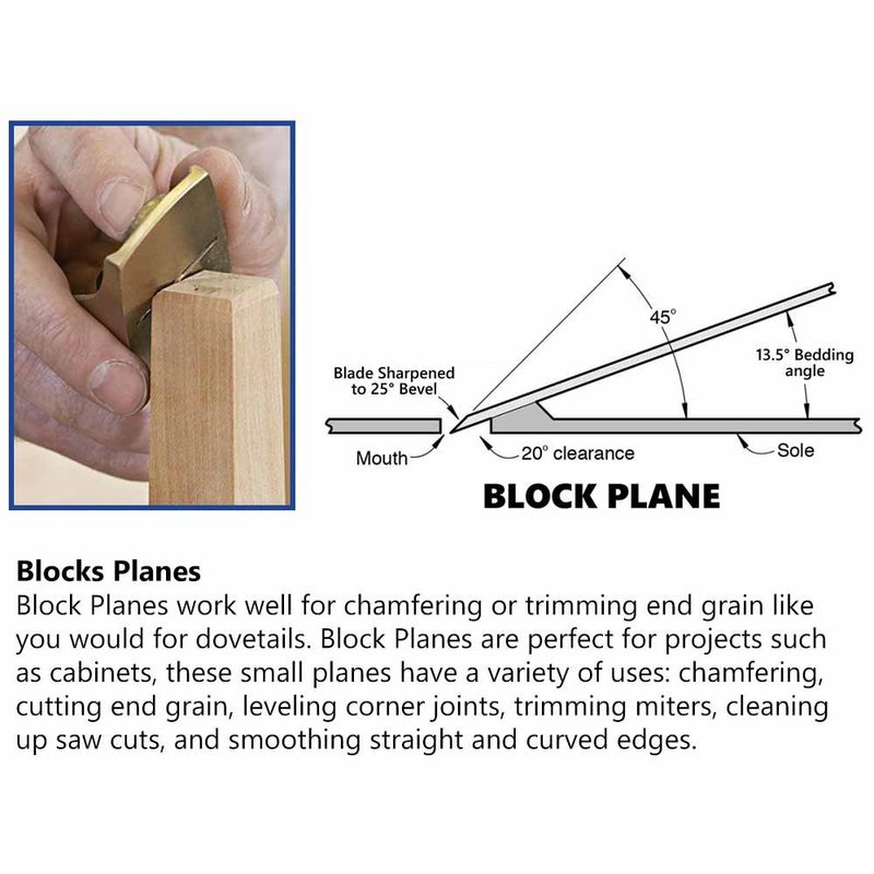 - 6-1/4" contractor grade block plane with a 1-3/8" cutter | Fully adjustable cutter blade rests at 13.5 degrees