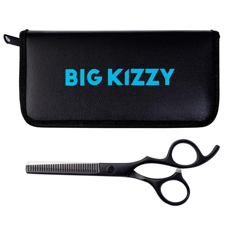 - HIGH VALUE: Big Kizzy scissors for thinning hair extensions are high quality stainless steel that are long lasting and can be sharpened by a professional for years of use! Custom zipper pouch included to safely store thinning shears to protect from moisture and make it easy to transport.