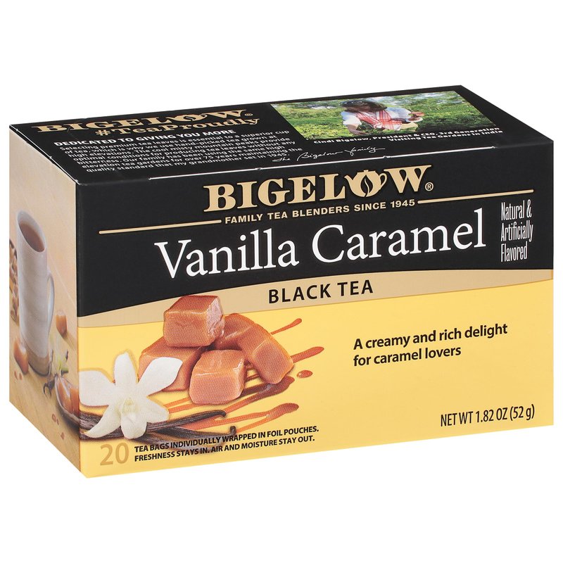 - Sweet Caramel: Bigelow's Vanilla Caramel Black Tea is the perfect complement to your any meal; The sweetness of caramel gives this tea a lift; Add a little milk to round out the flavor