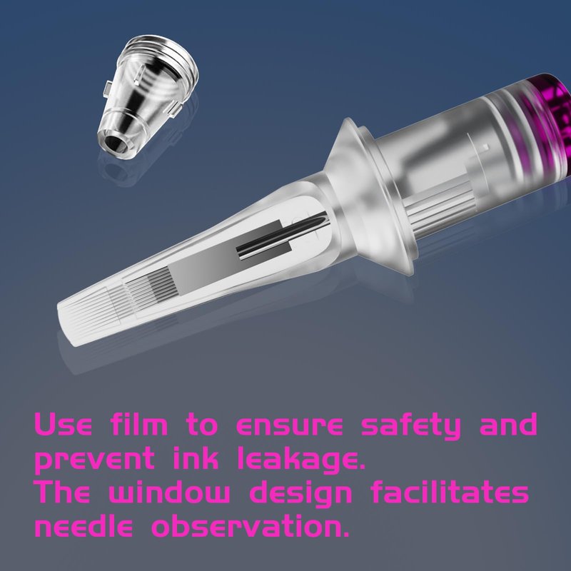 - Rubber band loaded cartridges, with plastic membrane so that tattoo ink won't flow back to the tubes.