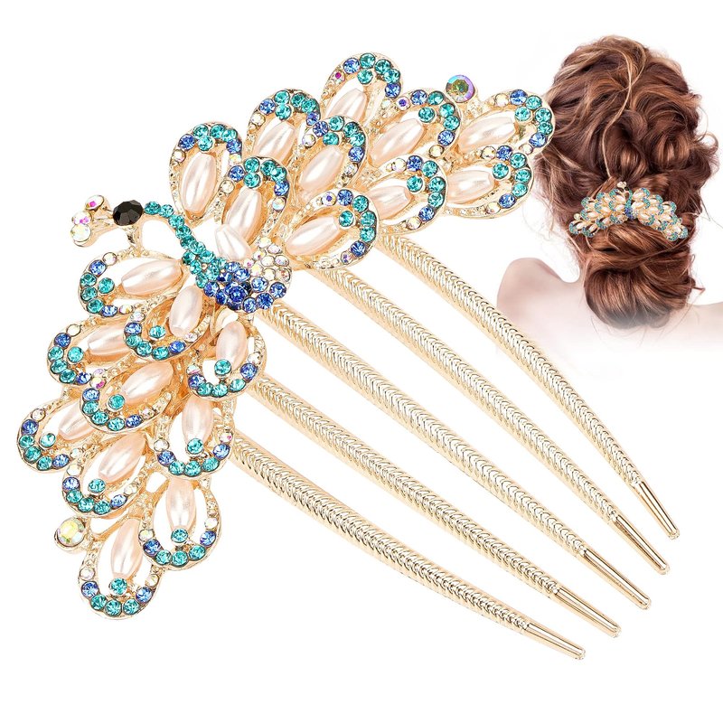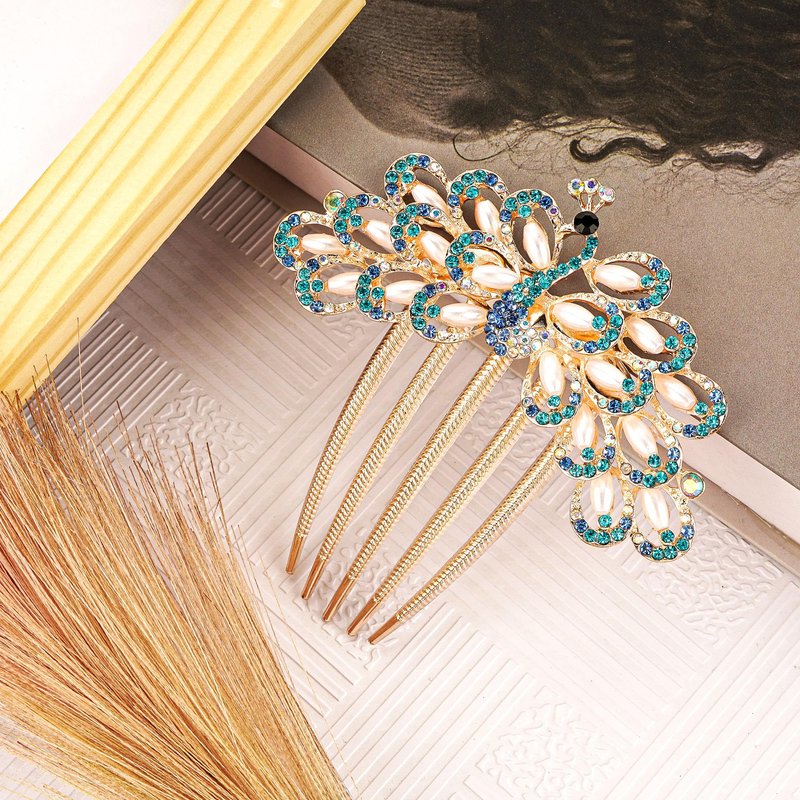 Biiange Hair Comb, Multicolor Metal Peacock Design Hair Accessories, Rhinestones Hair Piece, Crystal Bridal Hairpin for Women and Girls (Multicolour)