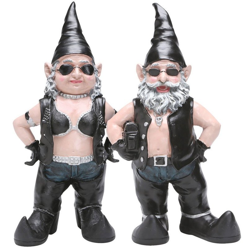 Biker Babe And Biker Dude Gnome Yard Art Gift Set