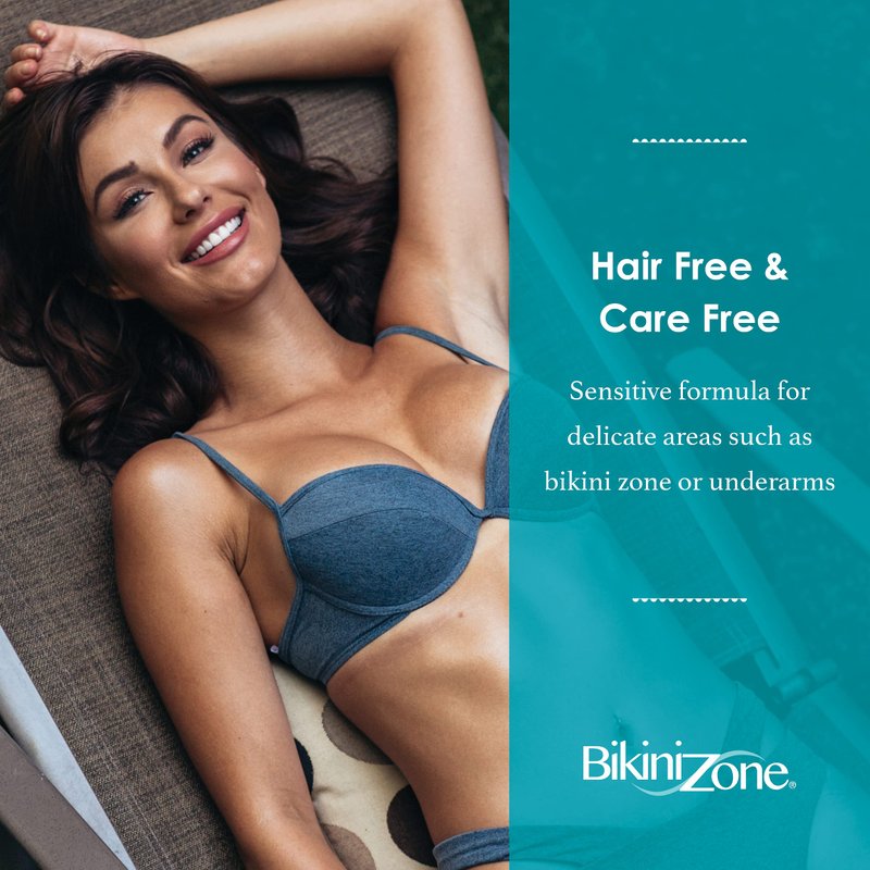 - SENSITIVE FORMULA FOR DELICATE AREAS – Bikini Zone Crème Hair Remover is a special ultra-gentle formula that works in just 4 minutes. Designed for sensitive areas like the bikini zone or underarms, our formula is fortified with green tea, aloe, and chamomile to smooth and soothe skin, and help prevent irritation. Since our crème removes hair below the surface, with Bikini Zone you will remain hair-free days longer than shaving. Enjoy quick and convenient hair removal in your most delicate parts