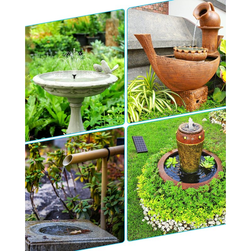 - SOLAR BIRDBATH FOUNTAIN KIT: The fountain pump is solar powered, can be used almost anywhere at home (backyard, garden, patio, pool ,etc), as long as there is enough sun. The most important this will attract many birds to your garden, providing them with a cold drink or a quick soak.