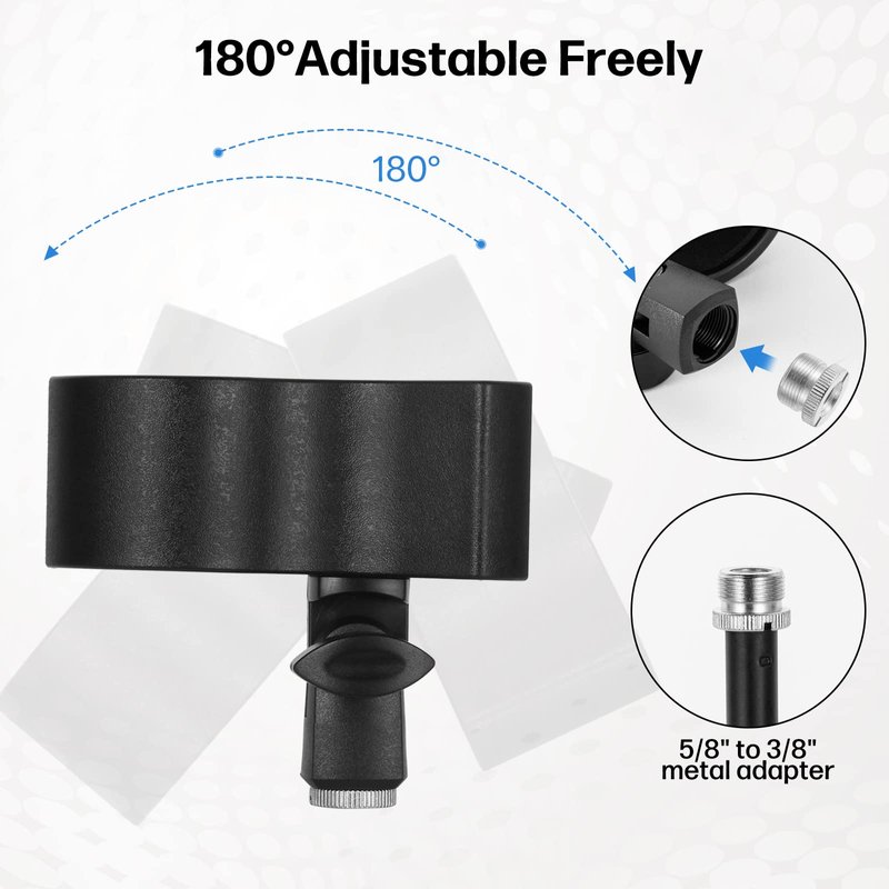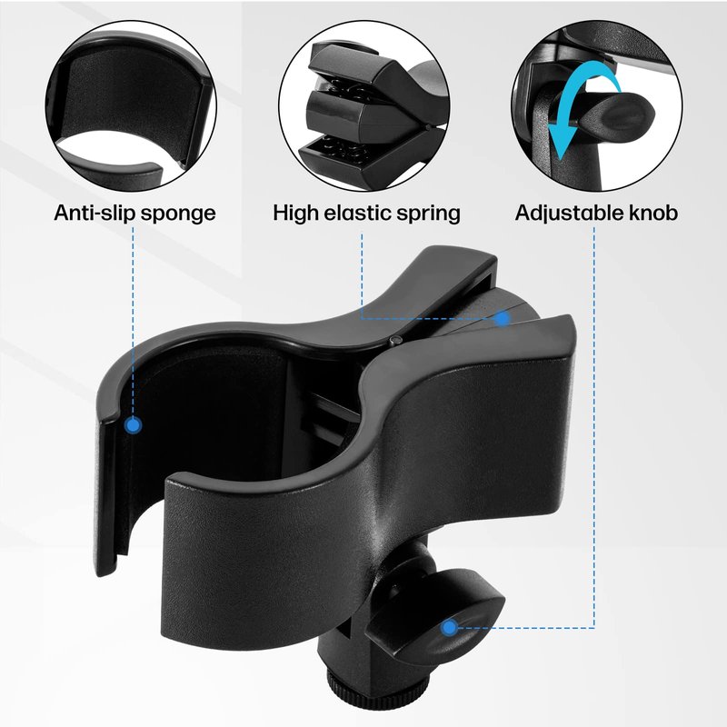 High-Quality Mic Clip There are four high elastic springs to keep the microphone from slipping off. This mic holder applies knob adjustment design, which is convenient for you to adjust the angel of microphone.