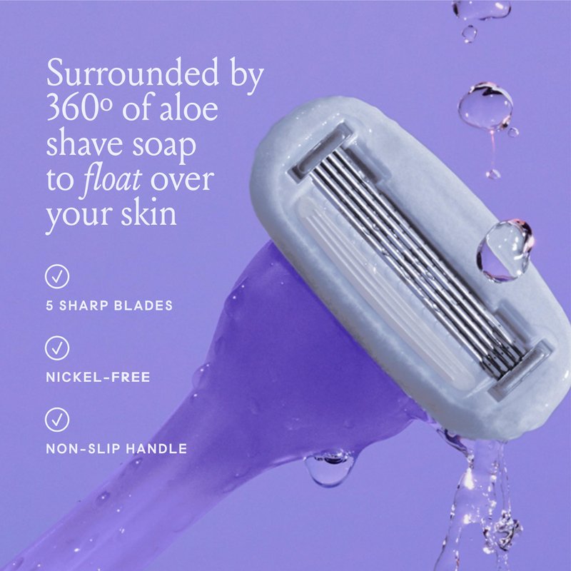- WOMEN’S RAZOR KIT: A non-slip ergonomic handle, four 5-blade razor refills, and signature magnetic holder.