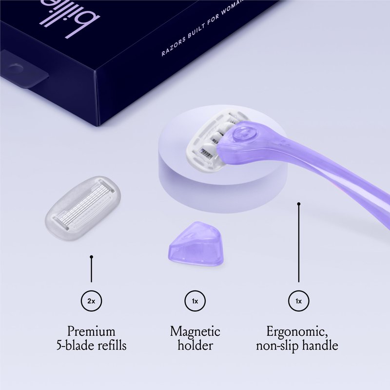 Billie Razors for Women Shave Kit – Women’s Razor + 2 x 5-Blade Razor Refills + Magnetic Holder – Moonbeam