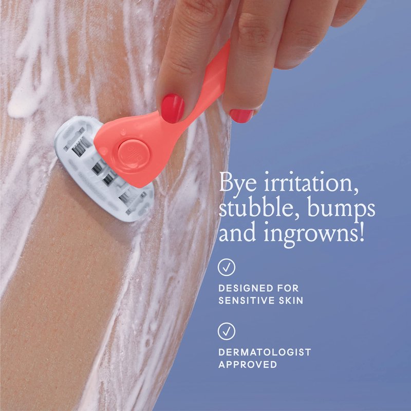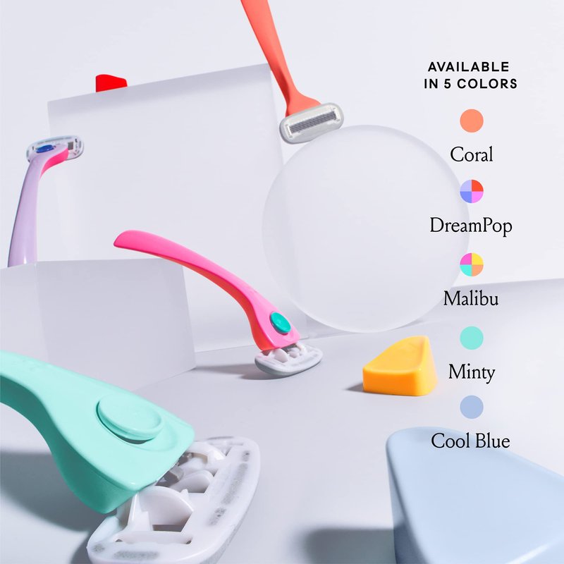 Billie Razors for Women Shave Kit – Women’s Razor + 4 x 5-Blade Razor Refills + Magnetic Holder – Coral