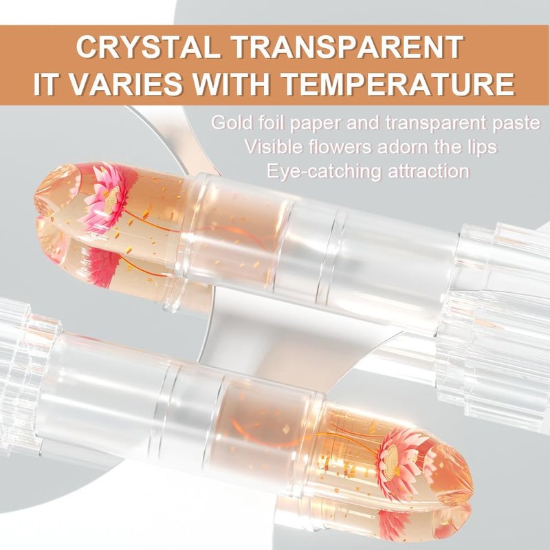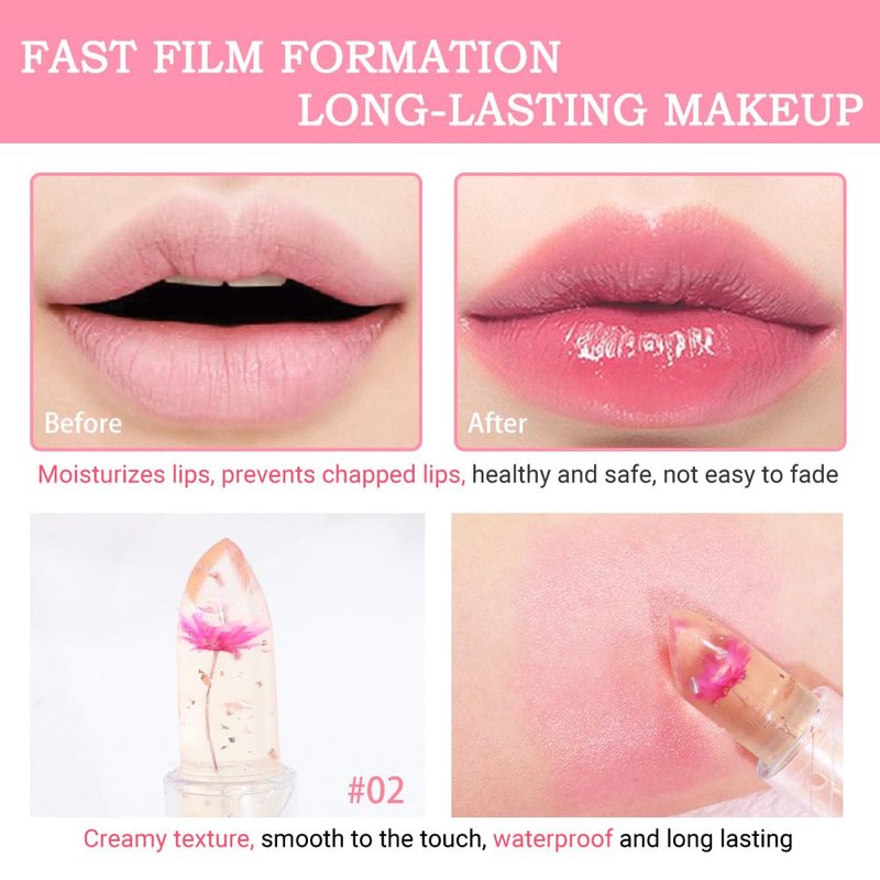 BINGBRUSH Crystal Flower Jelly Color Changing Lipstick,Long Lasting Lip Care Moisturizer Lip Balm Magic Color Change Lip Gloss Lip Tint Stain Matte Makeup Lipstick (02#Rose red flower)